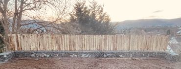 Gabion wall faced with timber fencing